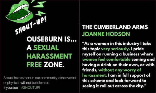 Staff at the Cumberland Arms have been trained to deal with sexual harassment as part of this Campaign.
