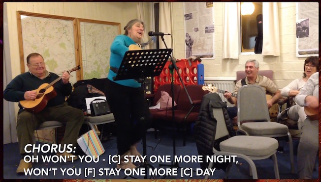 Here is Marie leading us in her version at the “sing around” at our weekend away last November in Wooler, accompanied by The Attic Band and Keith Perry on lead ukulele: